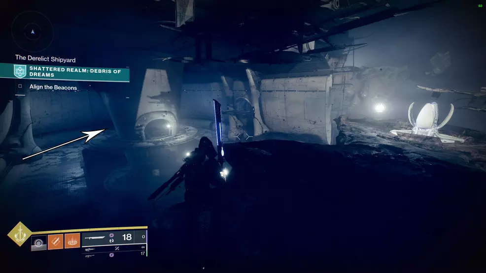 This Ascendant Anchor is behind the steep shaft at the second beacon in the Derelict Shipyard.
