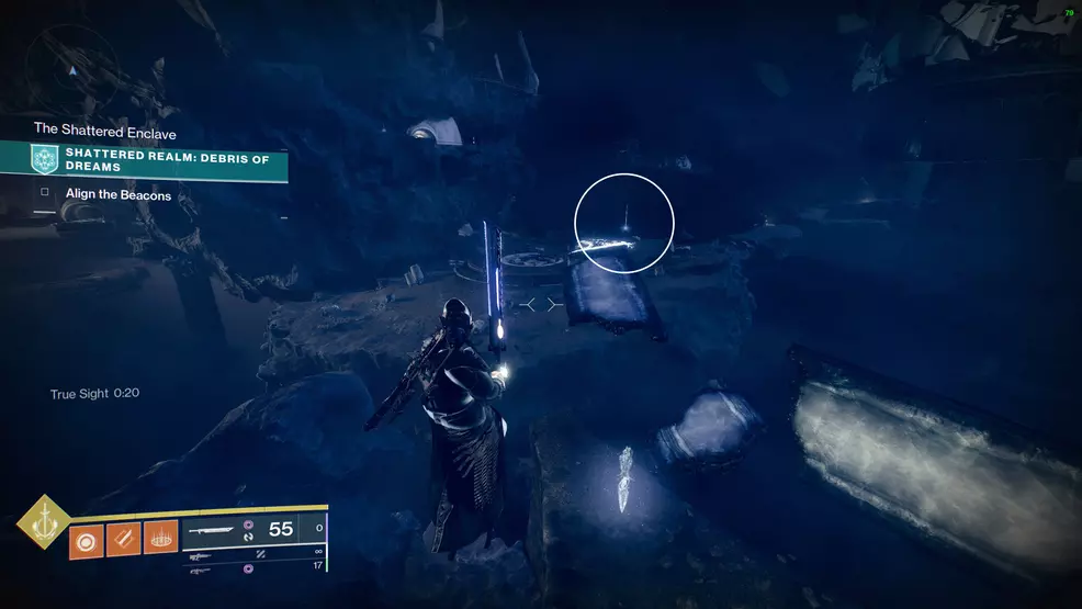 This Ascendant Anchor is up at the Shattered Enclave. Work your way to the first beacon to spot it floating out in the distance. Use the True Sight post to make platforms appear.