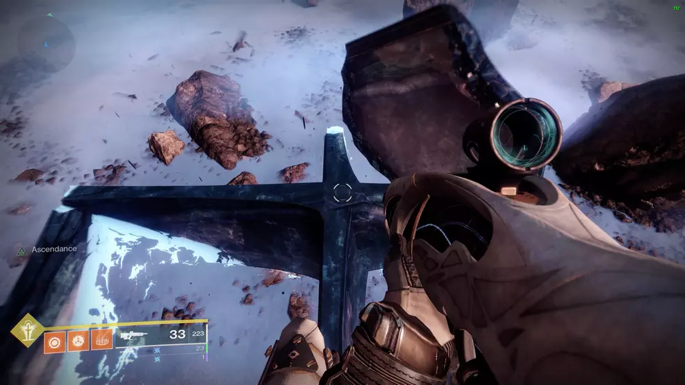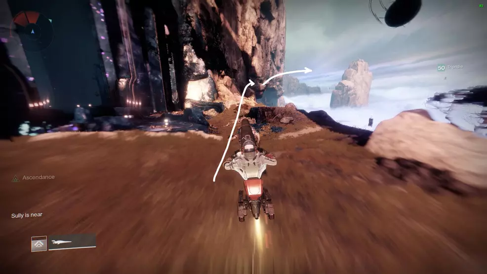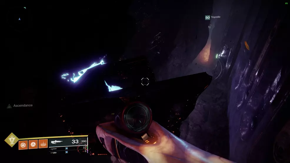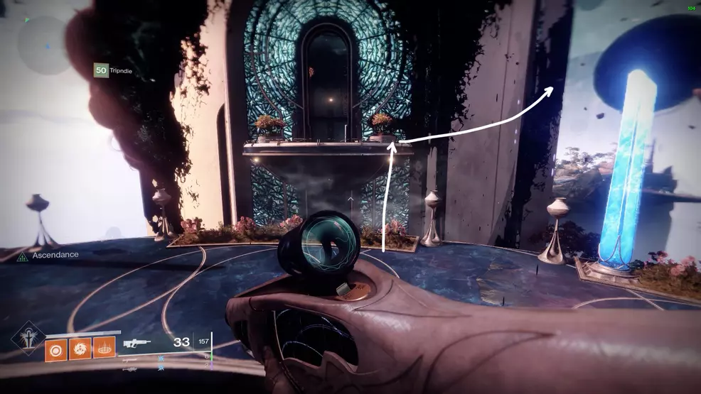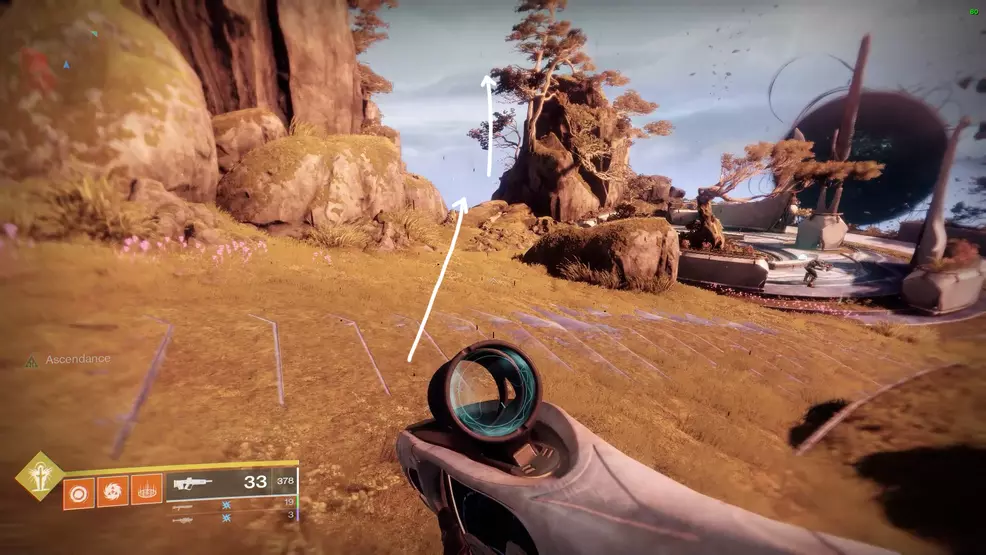 The eighth Ascendant Chest in the Bolder Fortunes Triumph actually looks like it’s in the middle of the map, but it’s actually accessed via the Aphelion’s Rest Lost Sector in The Strand. Clear out the Lost Sector, and once at the boss chest, turn around and look for the blue statue beside a boulder. Climb the boulder to spot the first of three platforms leading to the Ascendant Chest.