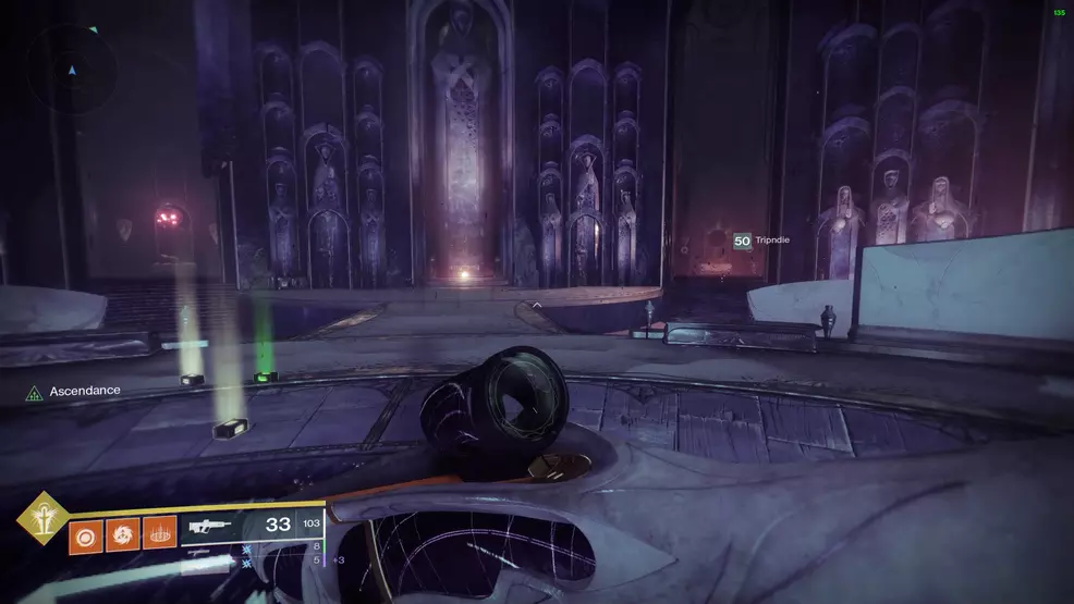 The next Ascendant Chest in the Hidden Riches collection can be found above the entrance to the Blind Well. Pass the enemies fighting outside and head into the foyer to find the first platform near the statue at the start of the next hallway. Jump up and around the room, following the platforms as they lead back outside to the chest.