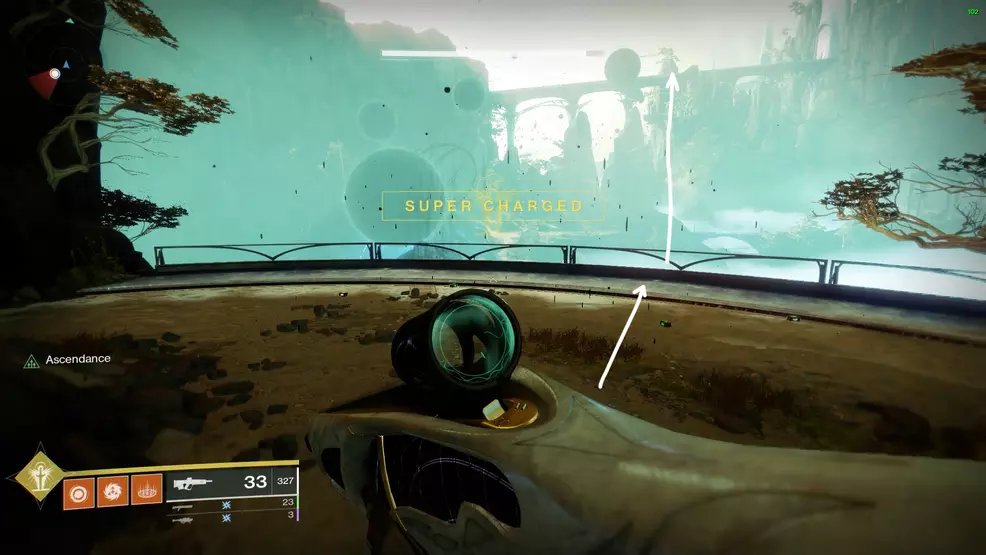 Climb the platforms and instead of going below the central structure, climb over it and drop down onto the ledge on the other side. Follow the route through the structure as it wraps back outside and then in again. The Ascendant Chest is right in the middle.