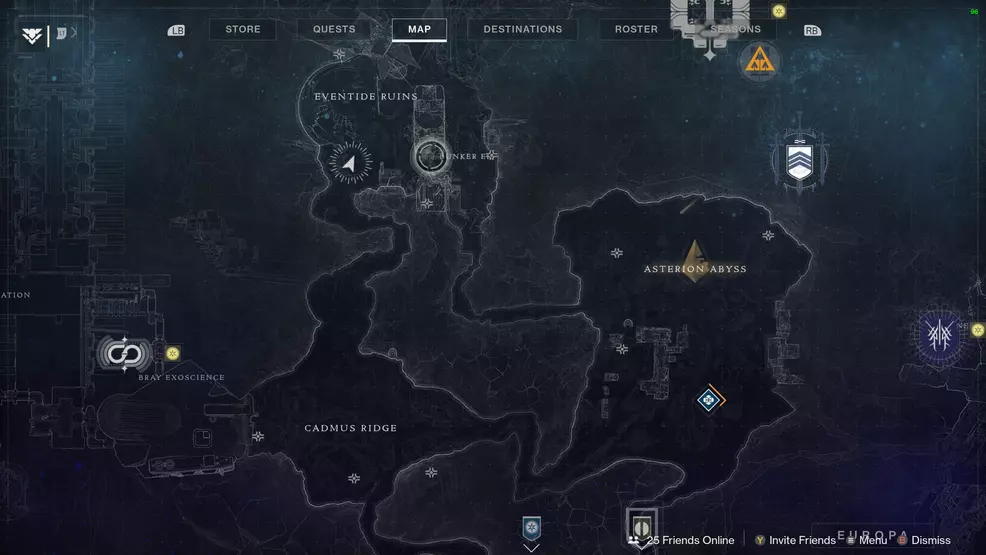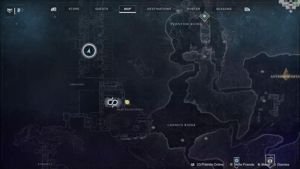 This dead Exo is found in the Eventide Ruins, near the entrance to the Deep Stone Crypt raid. As you enter Eventide Ruins from Cadmus Ridge, cut across the area, keeping the gravity lift to Riis-Reborn Approach on your left. Enter the destroyed building at the top-right of the map. The dead Exo is on the ground beside three exhausts.