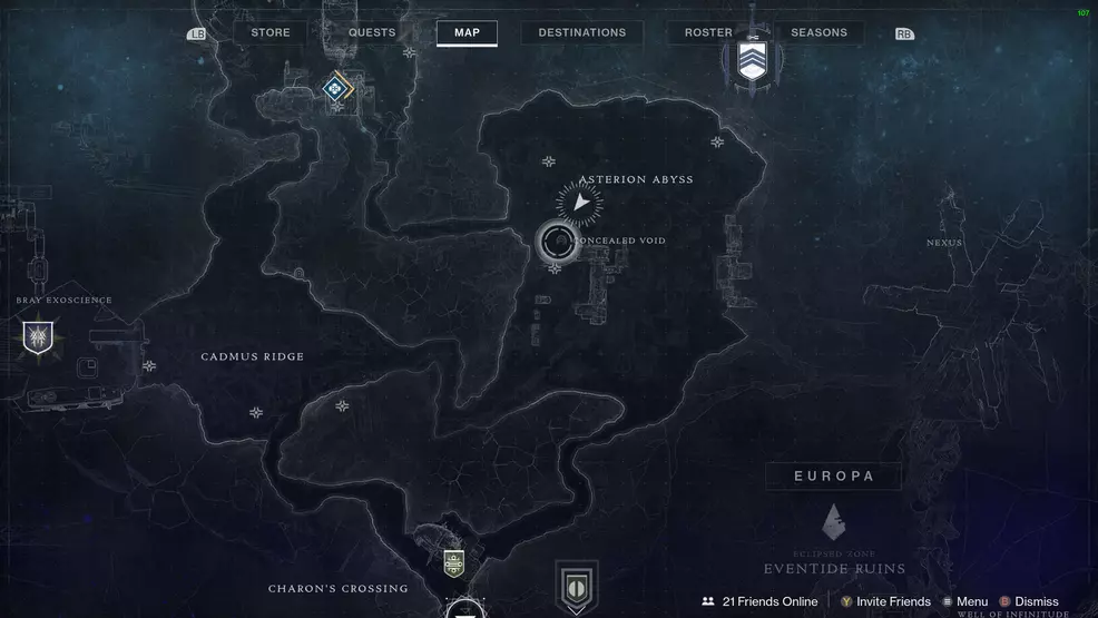 This next dead Exo is in the Well of Infinitude, an area accessed via Asterion Abyss. Head into the Nexus (the area to the right of Asterion Abyss) and at the fork, take the right-hand path. Continue through the Vex tunnels until you reach a larger room with drones flying around. This room contains the Exo, over along the wall near the drones.
