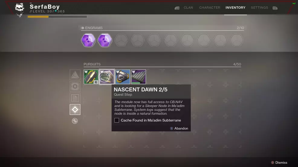The first Nascent Dawn quest requires players to complete various tasks around Mars, all of which are fairly easy. The most complicated step is the third, where players must collect four Resonant Stems and combine them into an Override Frequency, and then take this new item to the Sleeper Node found in the Dynamo Apprach. The reward for this step is that more Override Frequencies can be made and other Sleeper Nodes can be tracked down.