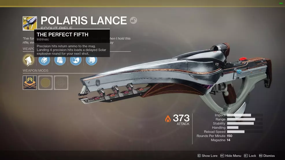 Though not technically part of the Nascent Dawn questline, the Polaris Lance Catalyst can be confusing for players to figure out. The first part is simple enough, get enemy kills, but the 50 Perfect Fifth kills isn’t entirely clear.