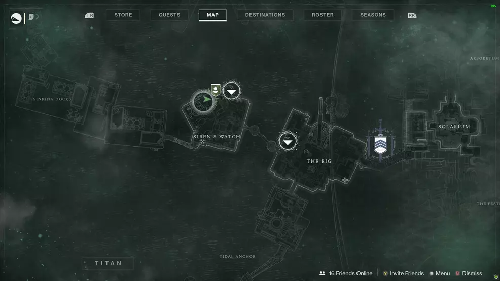 Another eye is in the Sinking Docks area, to the west of Siren’s Watch. To reach this, start at the fast travel point and head right. Go through the building near the edge of the area and cross the broken bridge tunnel. As you come out the other side, turn right to face a large window, the eye is above said window.