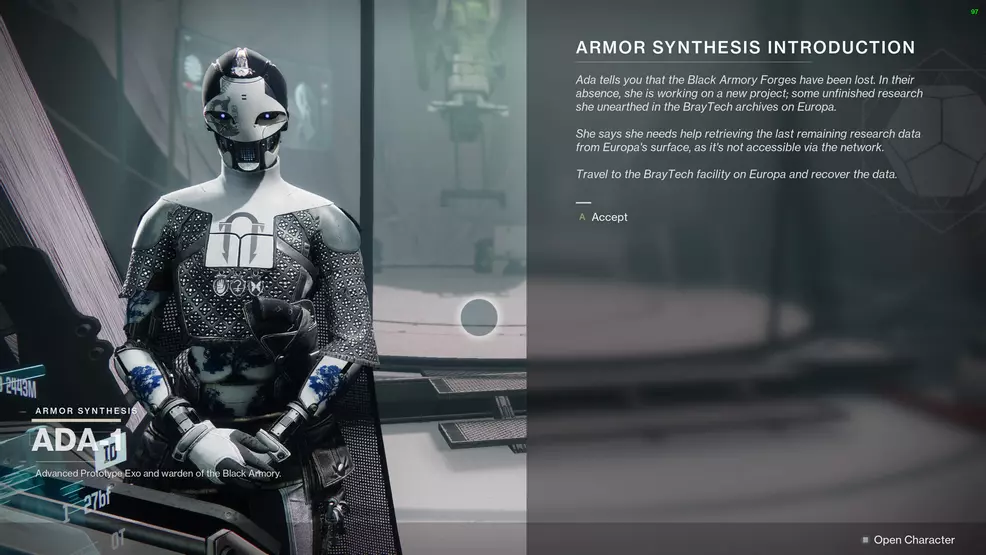 The Armor Synthesis Introduction quest in Destiny 2 is a helpful mission that introduces players to the new armor ornament system. The quest has several steps which are all fairly easy to complete. However, there is a bit of running around on Europa to do, with specific items to find.