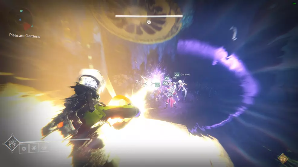 This means you must do one of two things in order to complete the Pleasure Gardens Challenge. The first option is to only use a stack of x24 to damage the dogs. What this boils down to is the person holding the Prism on the left and the person holding the Prism on the right would shoot a single flower each and then everyone would damage the dogs and prepare for the next phase.