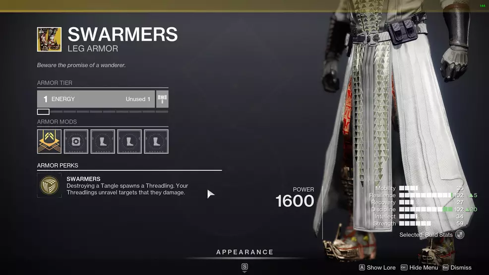 Intrinsic Perk: Swarmers - Destroying a Tangle spawns a Threadling. Your Threadlings unravel targets that they damage.