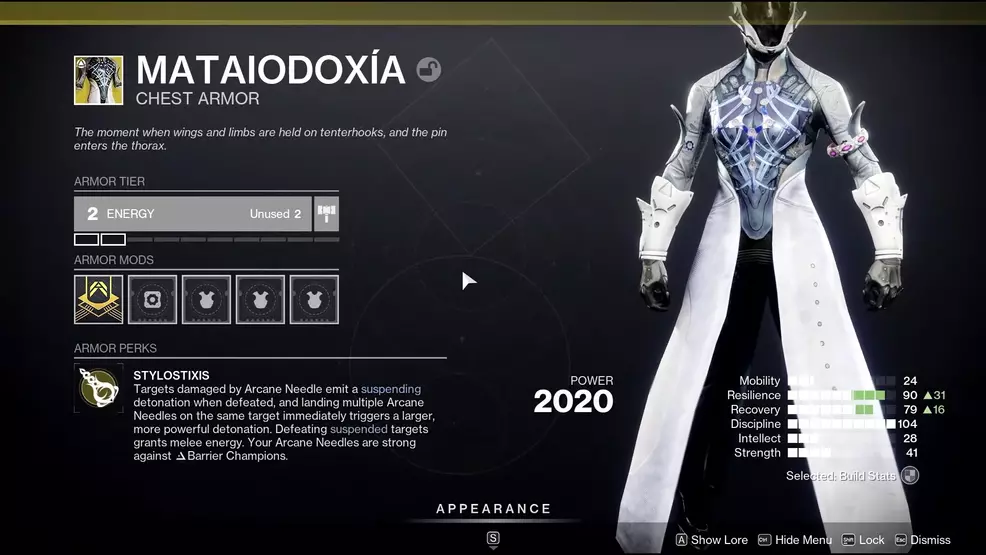 Intrinsic Perk: Stylostixis: Targets damaged by Arcane Needle emit a suspending detonation when defeated, and landing multiple Arcane Needles on the same target immediately triggers a larger, more powerful detonation. Defeating suspended targets grants melee energy. Your Arcane Needles are strong against Barrier Champions.