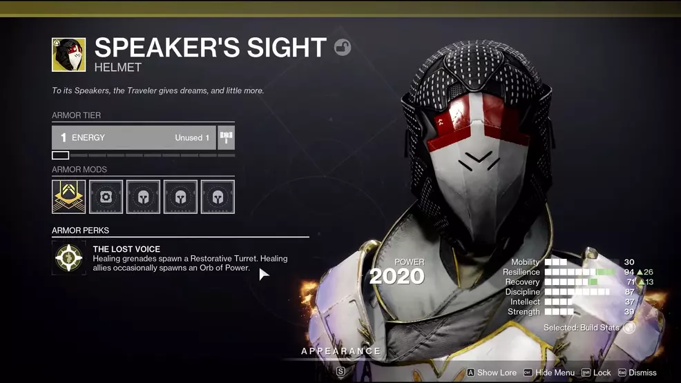 Intrinsic Perk: The Lost Voice: Healing grenades spawn a Restorative Turret. Healing allies occasionally spawns an Orb of Power.
