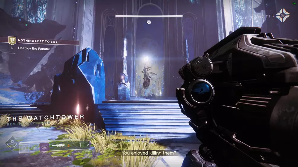 With The Fanatic defeated, continue through the various levels and dimensions of the Watchtower, killing Taken along the way. At the top of the tower, players will face the Chimera, Voice of Riven.
