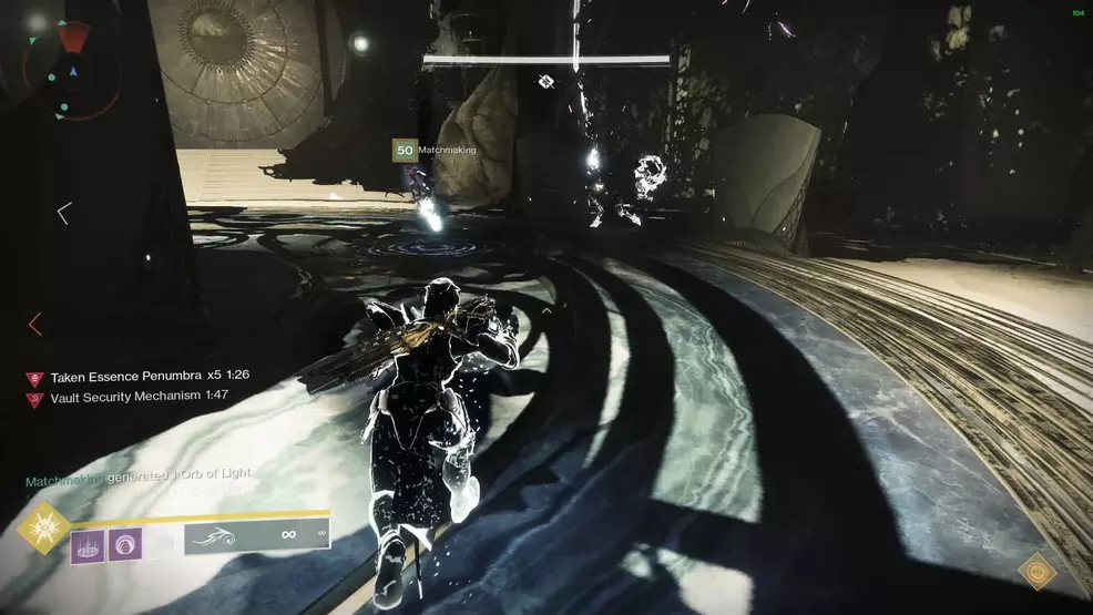 Whenever an Eye of Riven dies and the Taken Essence is picked up, two of the three arenas will be sealed off by a Taken barrier. The player holding the Taken Essence will need to run through the connecting tunnels in order to reach the central lock mechanism. During this time, they must note which status they have (Penumbra or Antumbra). It’s worth mentioning that after picking up a Taken Essence, the player will receive a debuff, preventing them from picking up another one in close succession.