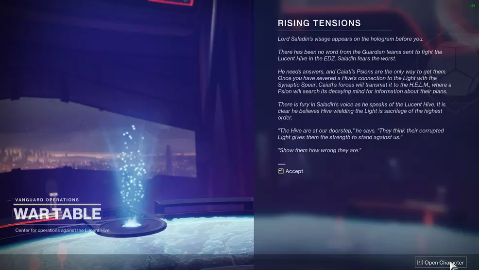 After hearing Saladin speak, you should automatically hear Zavala’s message. If this isn’t the case, return to the H.E.L.M. and interact with the War Table to hear the debriefing.