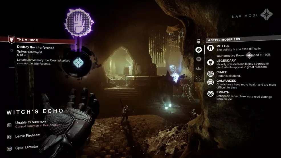 The interference is really just two Spikes that are found in Savathun's Throne World. Once you take out the Scorn in the first area, you can shoot the Spike to destroy it. Bring up your Ghost to find the location of the second Spike, then head that way and destroy that one too. This will lower a barrier and allow you to progress forward to Witch's Echo.