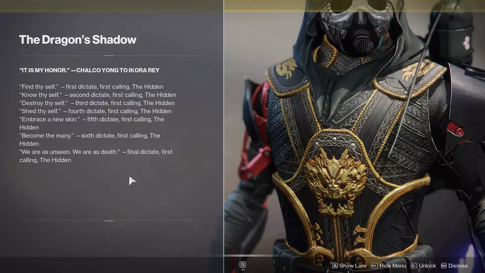 Dragon's Shadow Exotic Hunter Chest Armor - Destiny 2