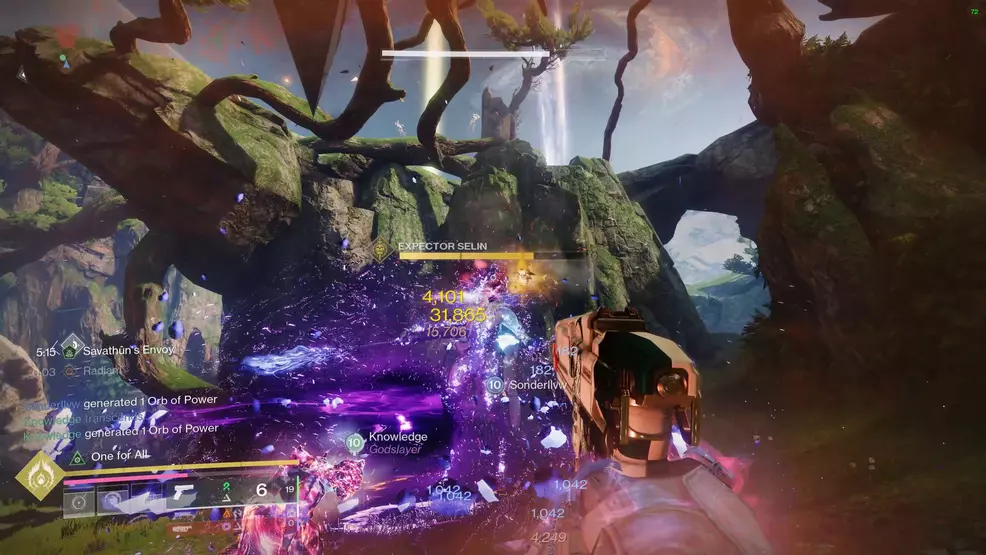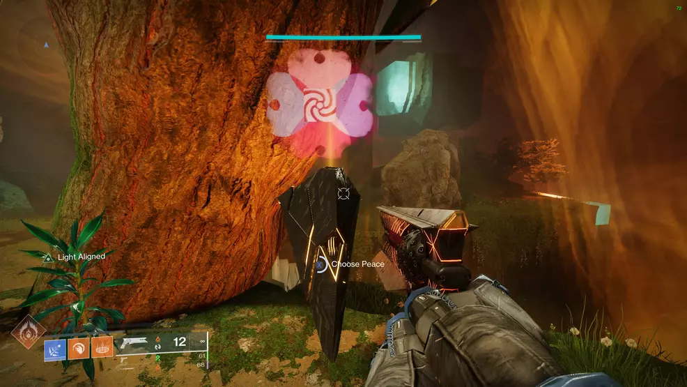 The Light Aligned player will now see three symbols in front of the splinter near Selin. Read out the symbols from top to bottom. The Dark Aligned player will see symbols and nodes floating around the area. Shoot the nodes that match the symbol callout. This will allow you to deal more damage to Selin, removing another third of its health at which point it will retreat and Yemiq will enter the fight.