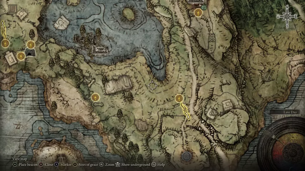 Speaking of the map, it does eventually become dotted with icons that you discover, be it the bonfire-like Sites of Grace that act as fast travel points or icons of buildings, caves, and structures you find. Unlike other open world games, these don’t get crossed off or faded out once searched, so it’ll be up to you to remember where you’ve been.
