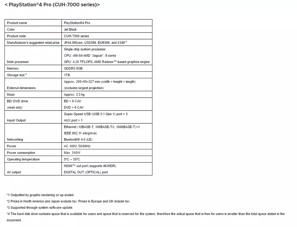 PlayStation 4 Pro went on sale on November 10, 2016, and costs $399. Each console includes a 1TB hard drive, one DualShock 4 controller, one HDMI cable, one UBS cable, one power cord, and one mono headset.