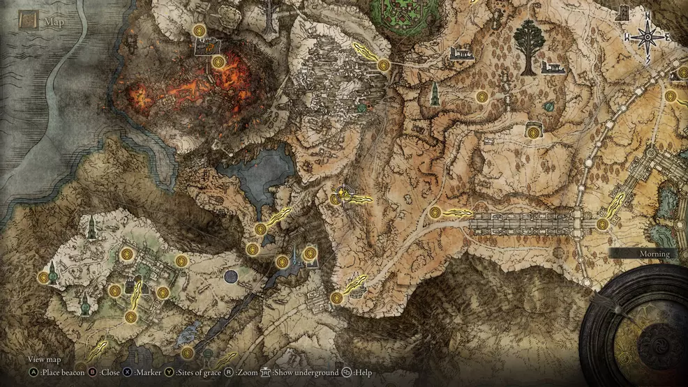 A Golden Seed can be discover in Mt. Gelmir, a short distance from the manor. Go down the hill to find it and continue further to discover one of the many map fragments.