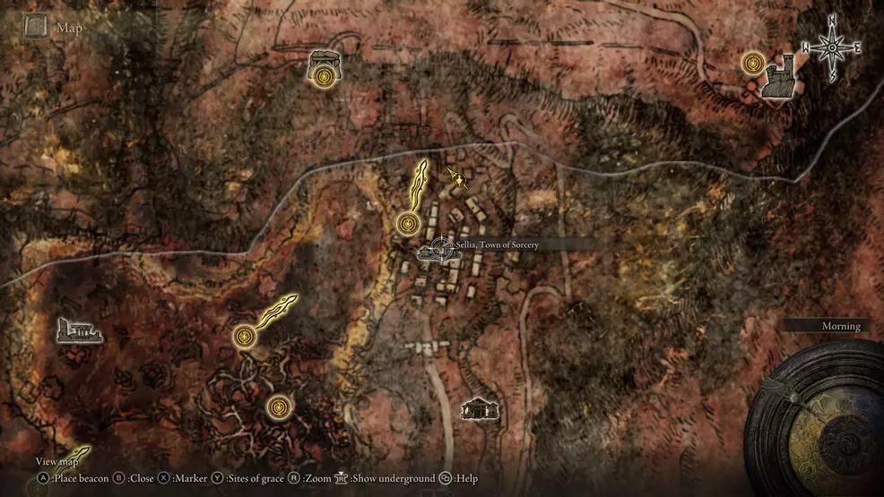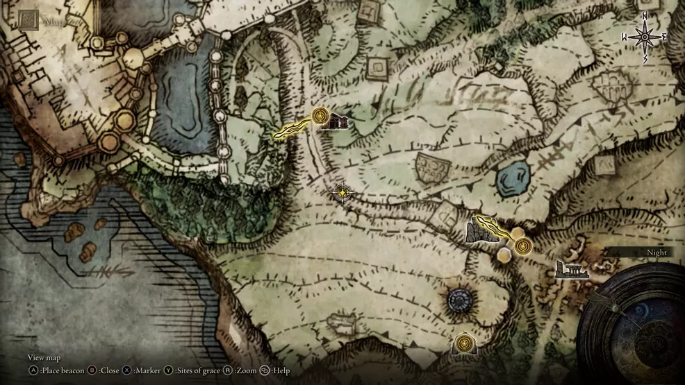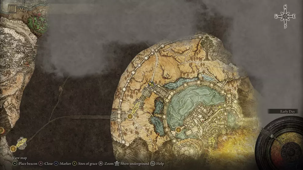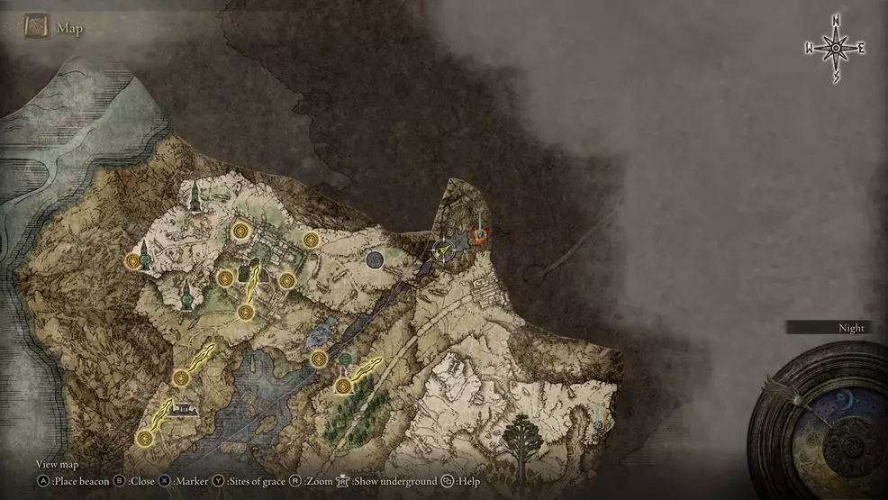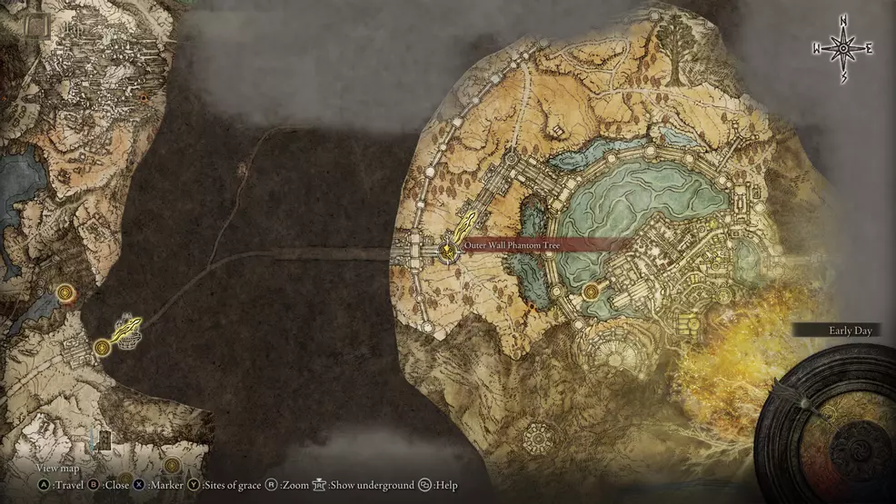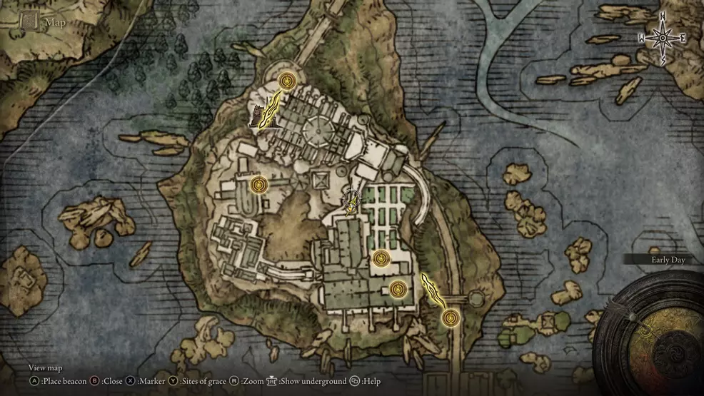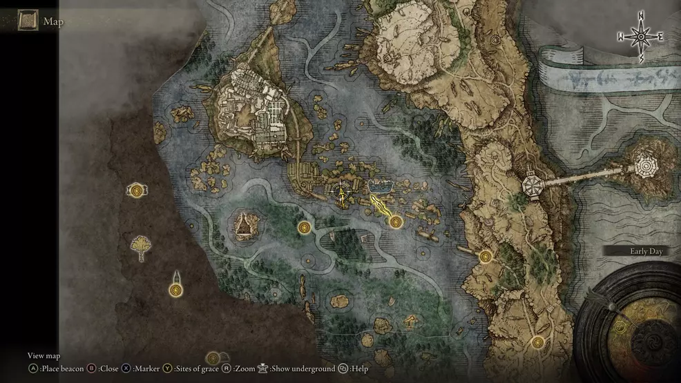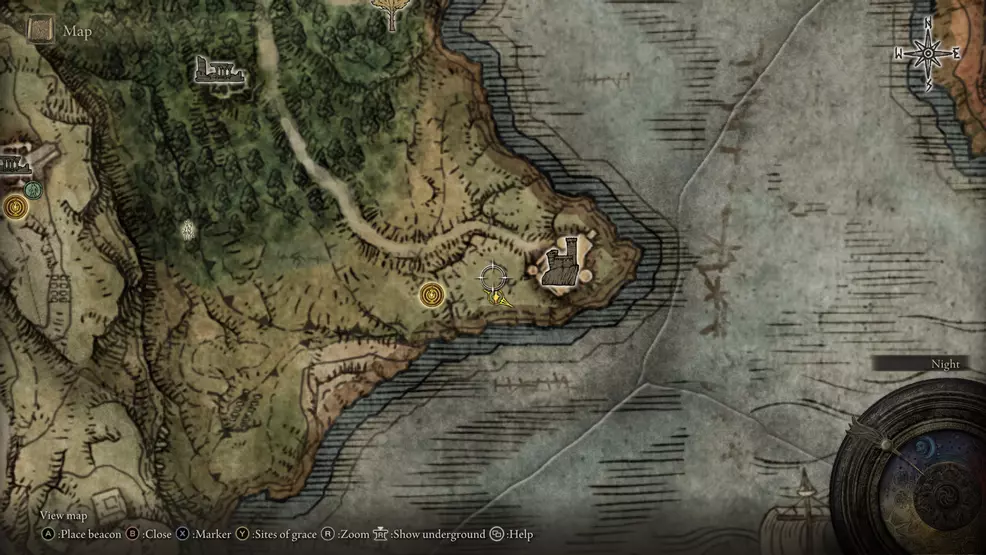 A Golden Seed is located to the far south of the Weeping Peninsula, on a raise overlooking the impressive fort.