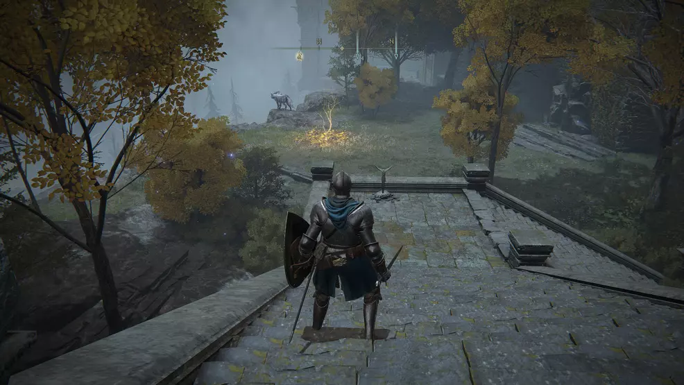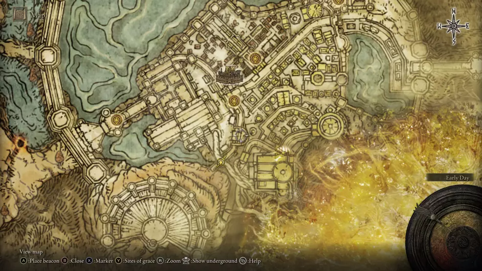 Far to the north is another Golden Seed, this one outside of a large building atop the hill.