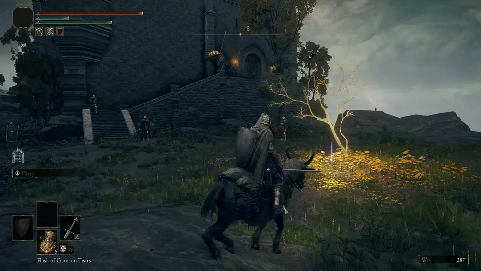 The first Golden Seed in Limgrave is found through the gatehouse and up toward the castle. It’s right near a little shack.