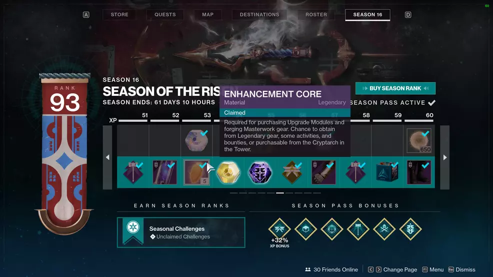 Vanguard, Crucible, Gambit, and even Dares of Eternity reward Enhancement Cores for ranking up. Whenever you hit a new rank with one of the vendors, return to them to claim your rewards. The first track includes one bundle of three Enhancement Cores. Once you reset the rank, there will be two bundles of three Enhancement Cores.