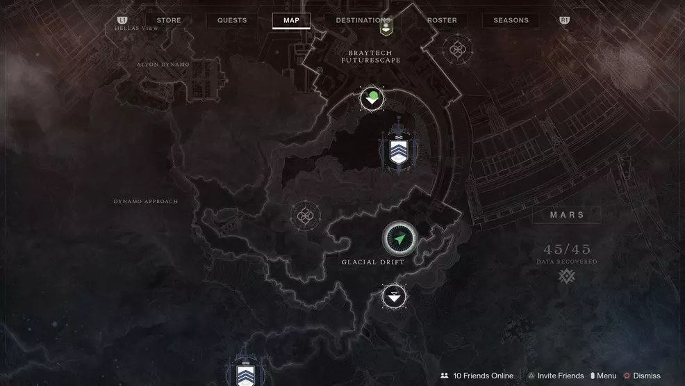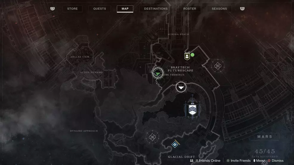 From the fast travel point in Glacial Drift on Mars, head left toward the building at the end of the train tracks. Inside this is the next Calcified Light fragment.