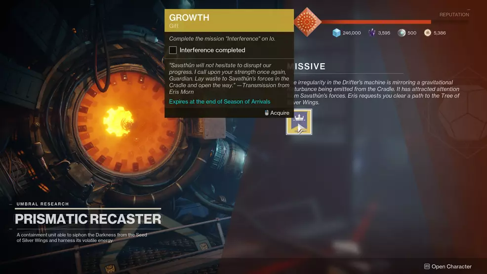 - Get Growth quest from the Prismatic Recaster