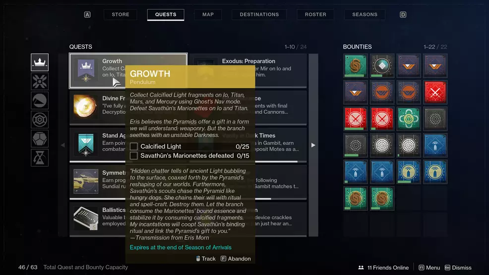 The last step in the Growth quest is Shape. The only task is to return to Drifter and use the Umbral Decoder to decrypt your gift. This will unlock Ruinous Effigy, at which point you can start destroying all 50 of Savathun's Eyes.