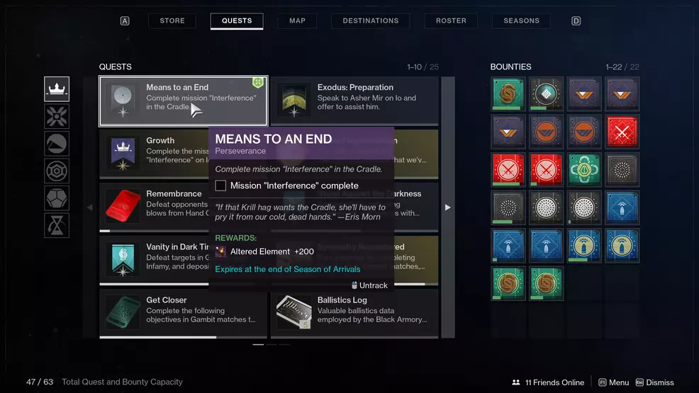 - Complete the Interference mission by completing the Means to an End weekly quest