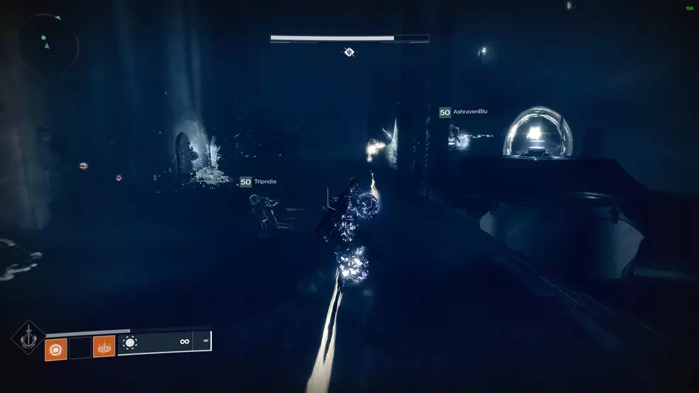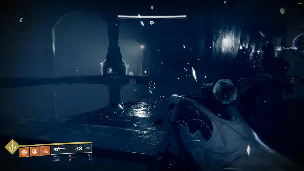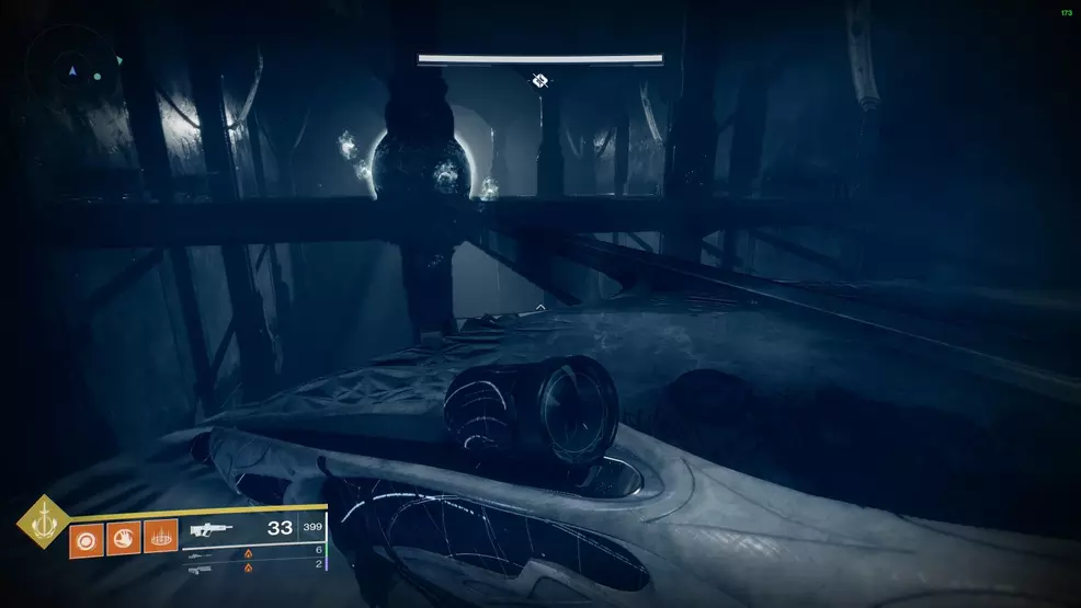 The next relic to charge is found during the rafters and ogres section of the Shattered Throne. Continue through the Shattered Throne to the large open room with the thin intersecting beams and the massive, swirling Taken orbs.