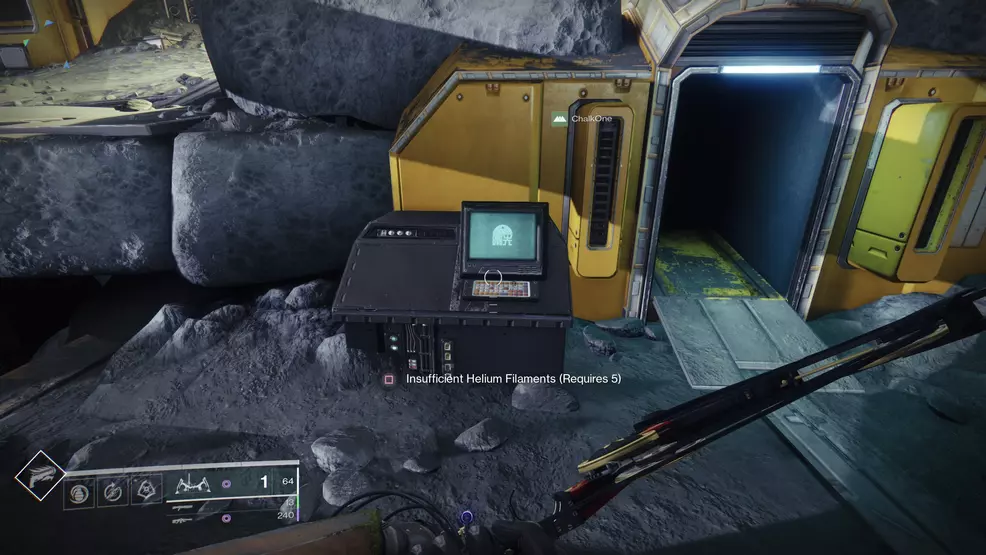 Helium Filaments are the resource that Guardian can collect on the Moon. This is done by finding the resource nodes, or by opening chests. Once players have five, they can begin the Tire game.