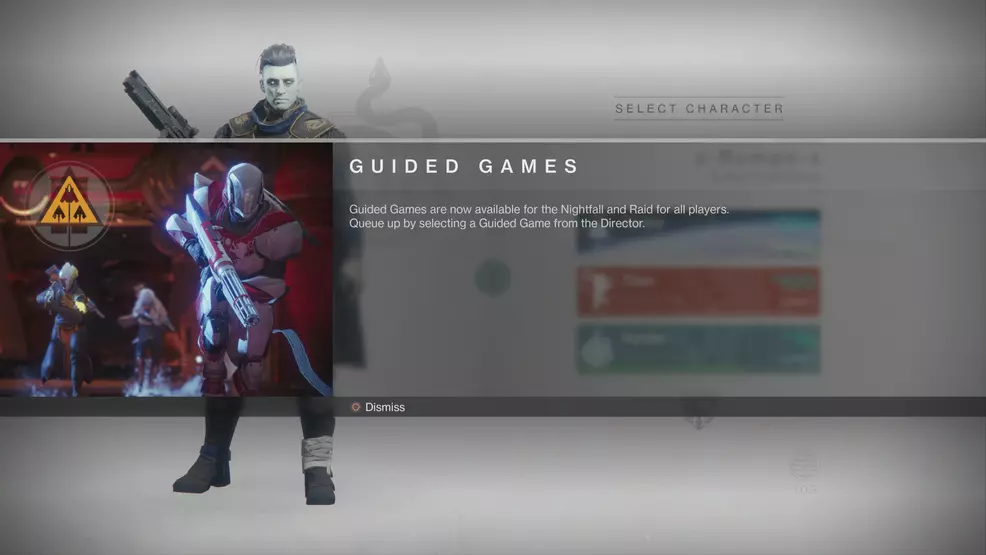 Guided Games are available for the Raid and the Nightfall in Destiny 2. The system features options for both the Seeker and the Guide. To join a Guided Game, look for an icon next to either the Leviathan Raid or Nightfall. This will prompt you to Select Mode.