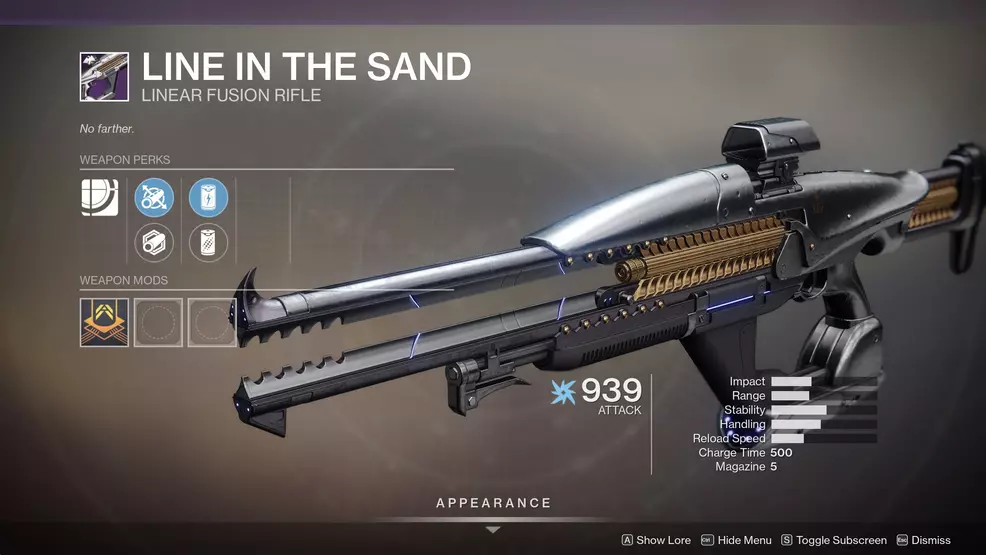Line in the Sand is a new Linear Fusion Rifle that hit Destiny 2 with Season of Dawn. It boasts some amazing DPS for PvP players, putting it high on the list of weapons that players should be chasing. Today, I’m going to look at the Line in the Sand god roll so you know what to look for when one does drop.