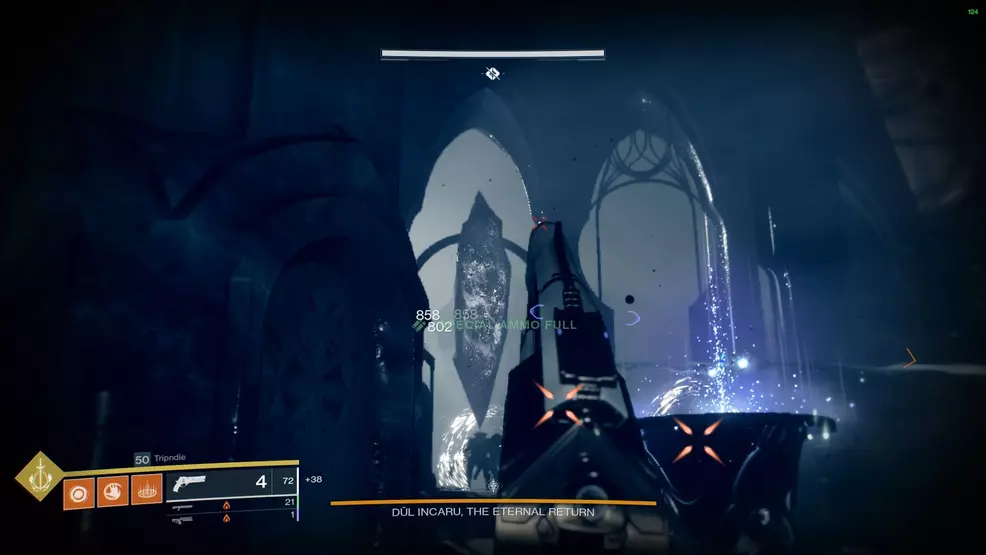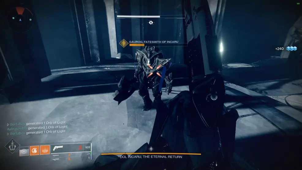 How the boss fight against Dul Incaru works is straightforward: killing the Knights drops a buff that allows players to deal damage to Dul Incaru. Though the buff allows players to deal damage, it will also kill them when the timer reaches zero unless they remove it by standing on the central brazier. When the Knights’ health drops, Dul Incaru will summon a crystal to shield the Knights, destroying the crystal removes their shields but also summons two groups of Taken Psions. When a Knight dies, it will respawn after roughly 60 seconds.