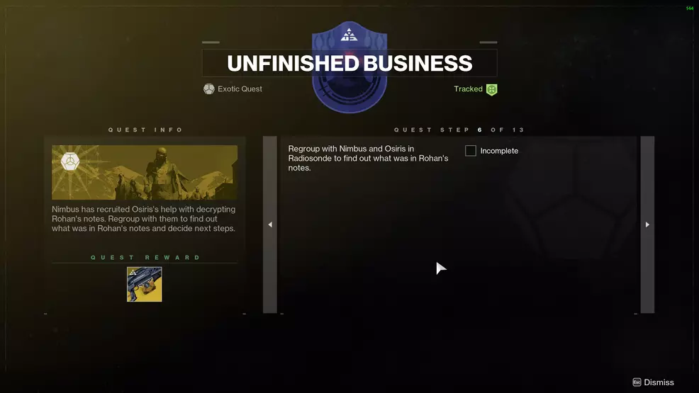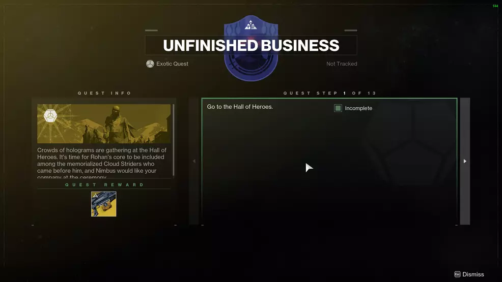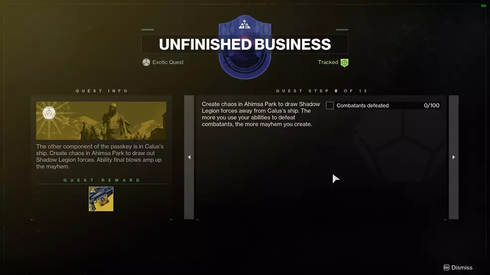 Unfinished Business Exotic quest - Destiny 2