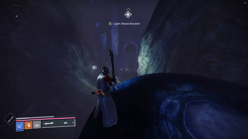At the end of the Smothering Darkness Cyst is where you’ll find another Lost Decryption Bit. Once you defeat the boss, stand on the center platform and look for the large, purple block that is on an angle on the roof. Go through the cave below it to reach a sort of chasm. Drop into the chasm and look on the ground at the back-right to find the tech.