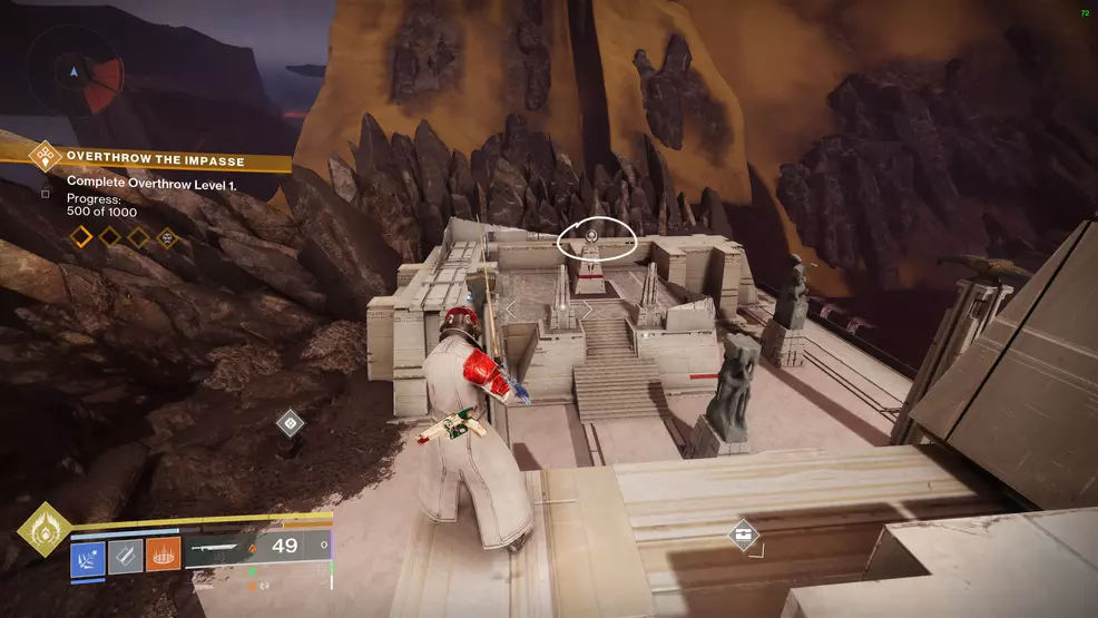 This Vision of the Traveler is in the Impasse at the top-right of the map. It’s in the ring shape on top of the white ziggurat structure.