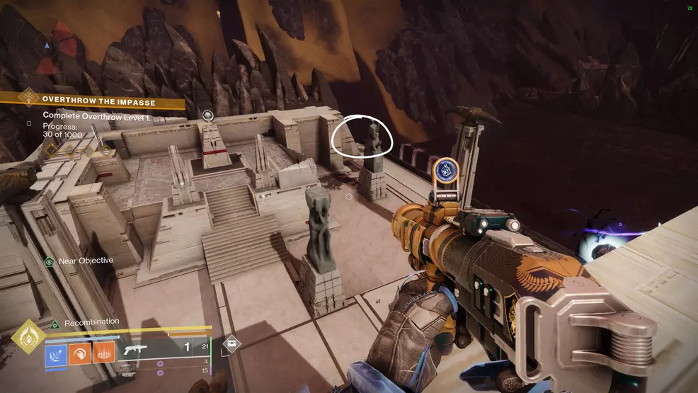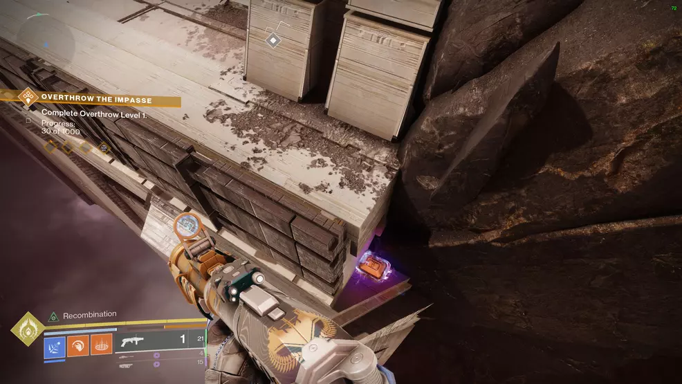 As above, Facet of Honor requires you to collect five Memory Vestige: Darkness. Facet of Honor is at the top of the snowy mountain you climbed during the Ascent mission, but it’s only available in Patrol. You will need to walk here from The Blooming or from The Impasse. Just keep climbing until you reach the top and then look over the side to spot the Prismatic chest on a ledge.