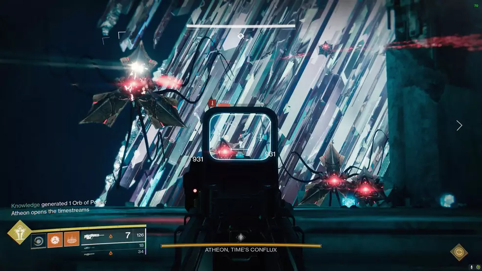 The final fight in the Vault of Glass is against Atheon, Time’s Conflux. This encounter teleports three players at random through one of the portals where they must collect a Relic and defeat three sets of three Oracles in the correct order before escaping. Once freed, damage can be dealt to Atheon thanks to the Time’s Vengeance buff.