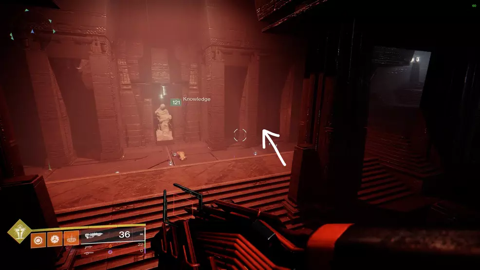 Instead of going down the stairs, look behind the pillar to spot the door that leads to the Guardian symbol.
