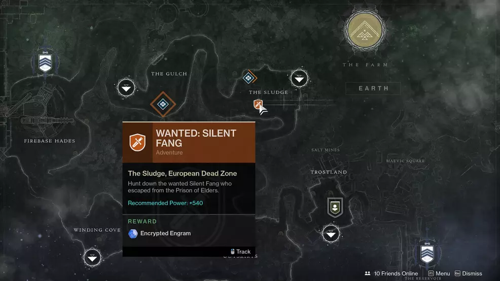 To see the heroic adventure required to hunt the Silent Fang, Guardians must buy the Wanted: Silent Fang bounty from the Spider in the Tangled Shore. This will require you to collect Ghost Fragments (five, to be exact) beforehand. With the bounty in your inventory, set a course for the Sludge in the EDZ. There will be a heroic adventure marked on the map. Set a marker for this location and head to the starting point.