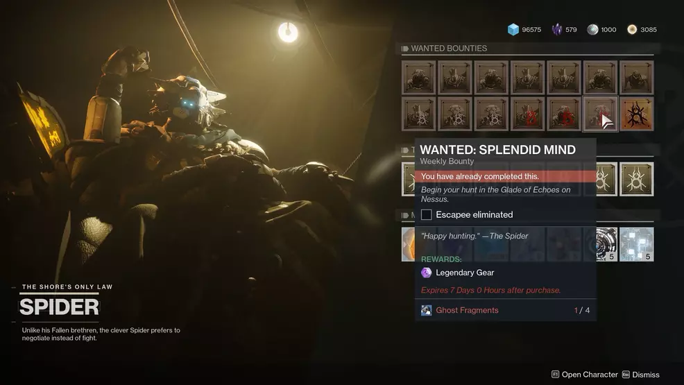 With the Splendid Mind eliminated and the Glade of Echoes on Nessus once again (temporarily) safe, turn in the Wanted bounty in the inventory. To find more Wanted escapees, visit the Destiny 2 strategy guide and browse through everything we’ve been up to since the Destiny 2 initial release in 2017.